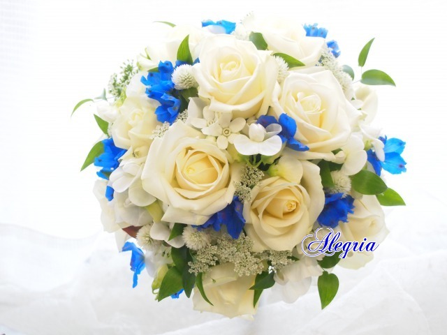 ro270 【価格】 ブーケ20,000円(税込22,000円) ブトニア2,000円(税込2,200円) 【花材一覧】 バラ(アバランチェ)・ホワイトスター・スイトピー・レースフラワー・デルフィニューム・スマイラックスなど